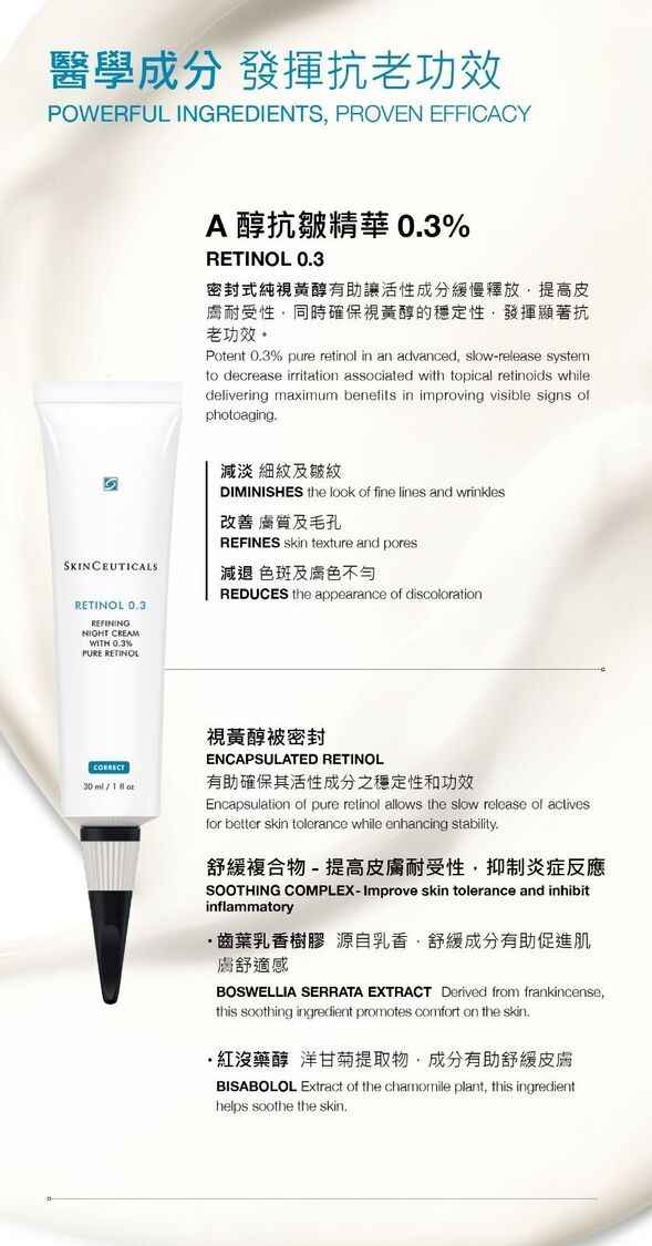 Skinceuticals Retinol 0.3/0.5/1.0 Refining Night Cream A醇抗皺抗衰老精華晚霜30ml