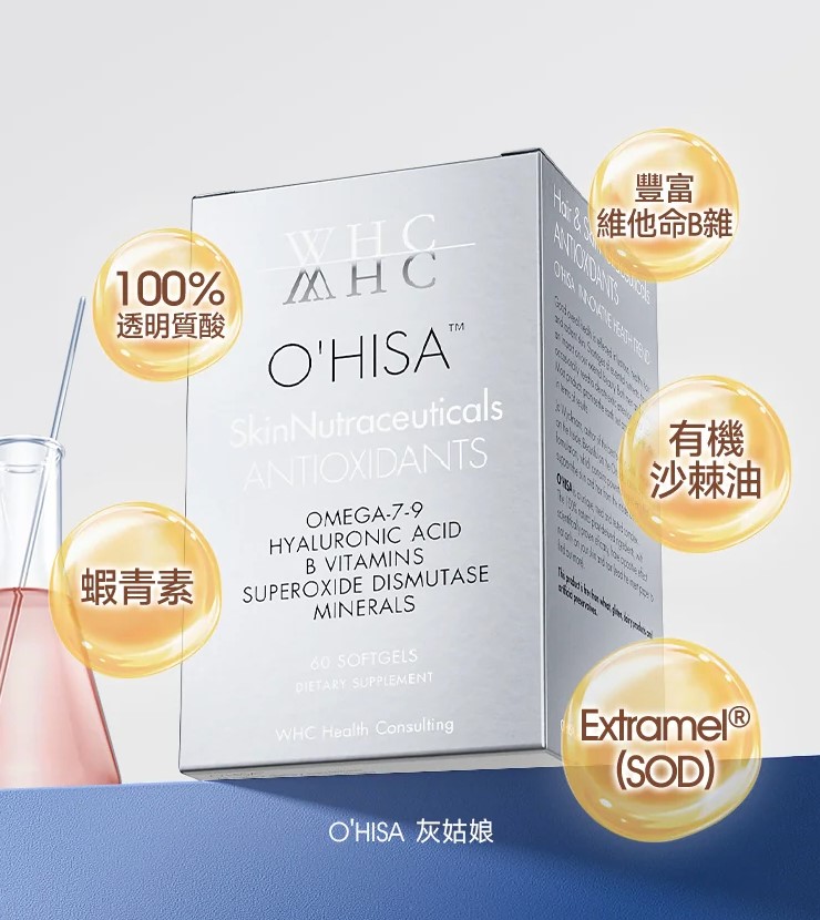 WHC O'HISA 灰姑娘 維他命B雜 口服透明質酸 蝦青素 抗衰老 護膚護髮 60粒